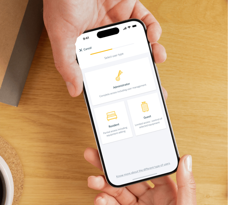 Ora puoi assegnare accesso personalizzato a familiari, amici, ospiti occasionali o dipendenti domestici. Con tre livelli di accesso distinti – Amministratore, Residente e Ospite – hai il pieno controllo su chi può fare cosa nella tua casa.